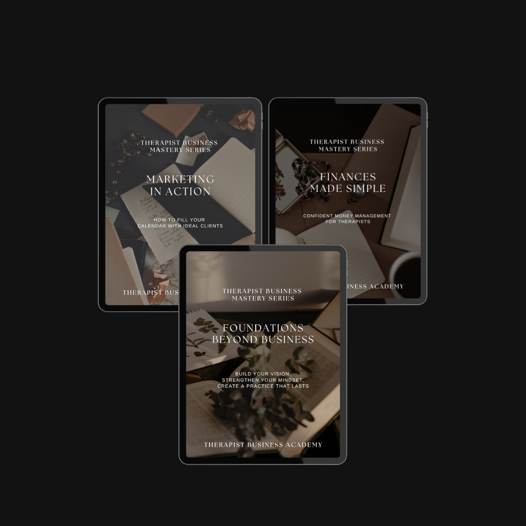 The Foundation Bundle brings together the first three core guidebooks of the Therapist Business Mastery Series - giving you the structure, financial clarity, and marketing direction required to build properly from day one.