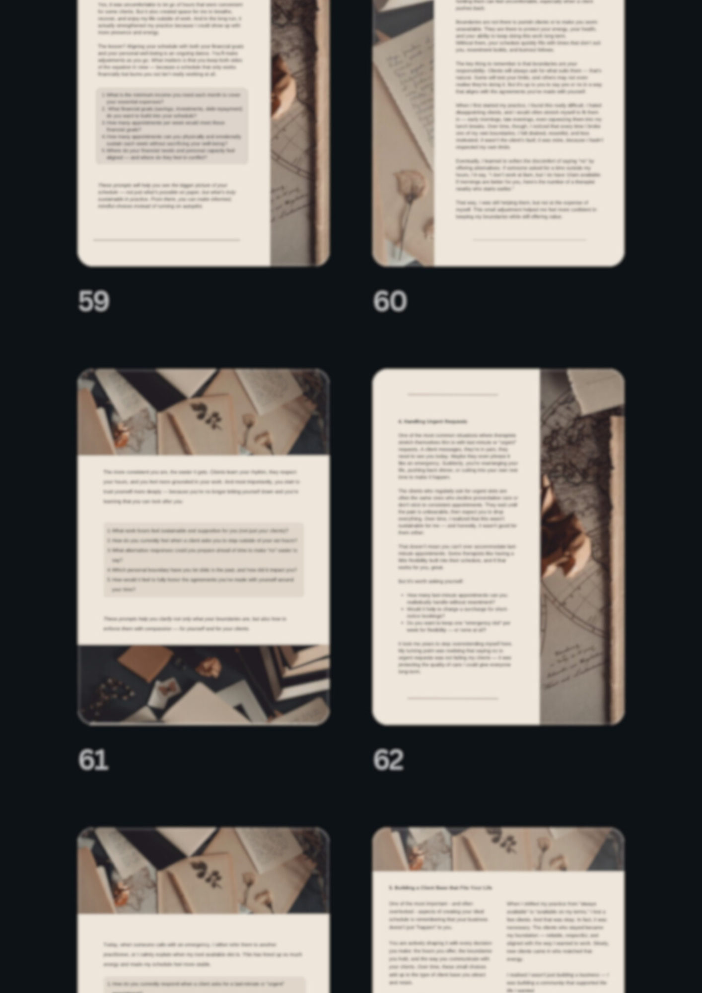 Foundations Beyond Business is built for the "how do I actually do this business thing?" moments. This a practical and inspiring guide designed for therapists who want to move beyond survival mode and create a career that truly fits their life.